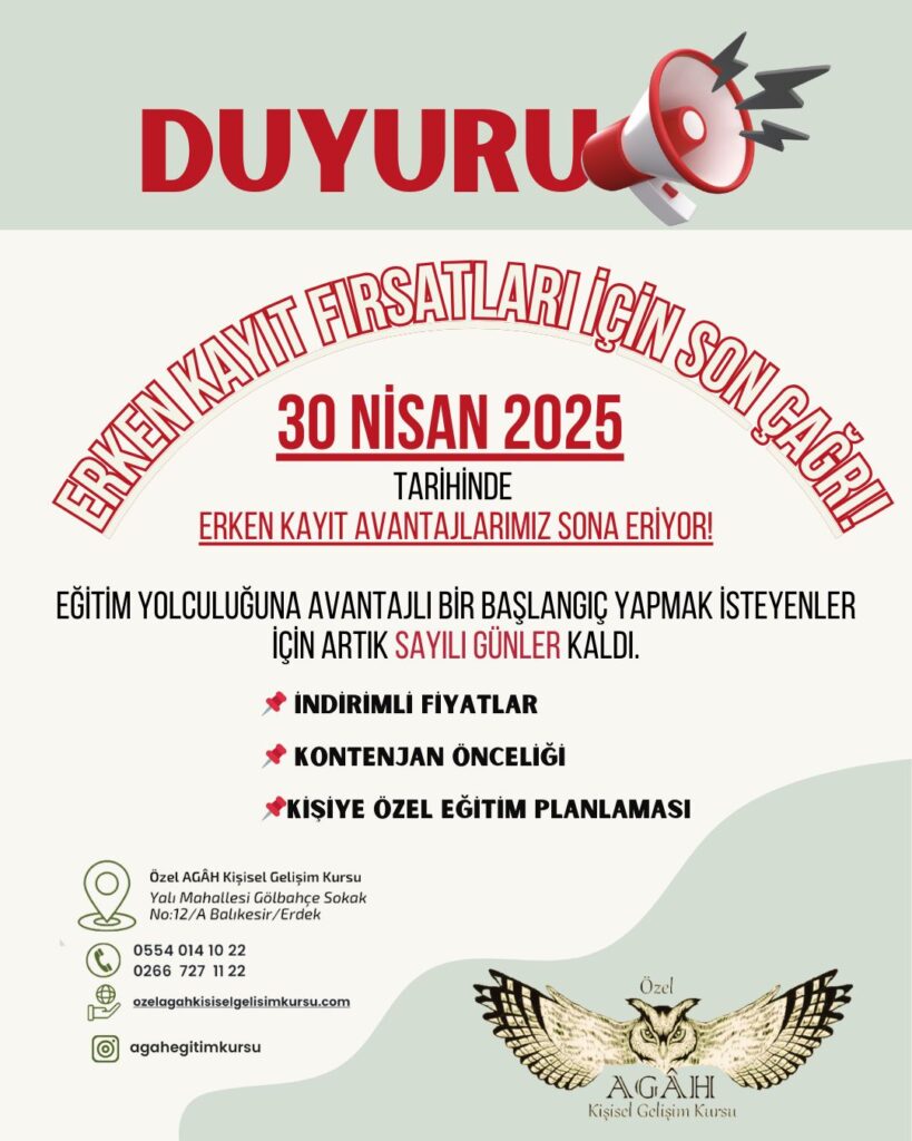 AGÂH Eğitim Kurumu’nda 2025-2026 eğitim dönemi için erken kayıt avantajları devam ediyor!